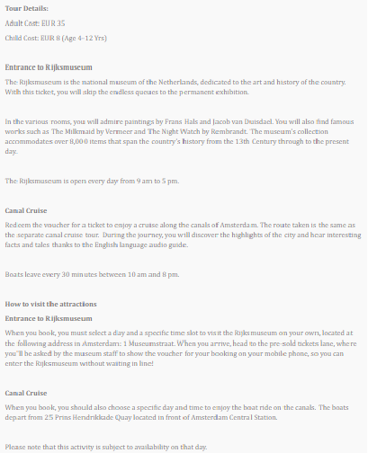 Places Covered : Amsterdam